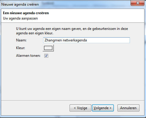e) Geef de agenda een herkenbare naam en evt. een kleur.