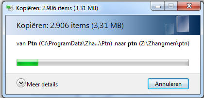 e) Als u op 'Ja' klikt worden de gegevens uit de lokale Zhangmen datamap gekopieerd naar de nieuwe Zhangmen netwerkmap.