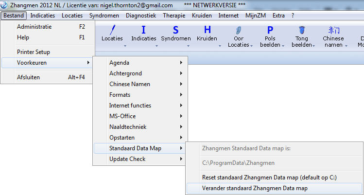 Zhangmen heeft ingebouwde netwerk functies in de Zhangmen PRO versie, ofwel diverse functies waarmee u Zhangmen gegevens over het netwerk met meerdere PC's, locaties of therapeuten kunt delen.