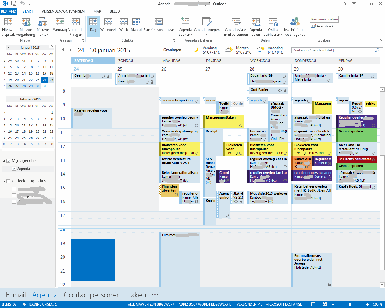 | Agenda | In Zhangmen is een eigen agenda opgenomen. Deze is vergelijkbaar met Outlook en de gebruikersvriendelijkheid is sterk toegenomen. U kunt echter ook kiezen voor Outlook of Google Calendar |