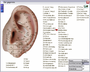 | Locaties en Indicaties | Alle locaties en indicaties van Klassieke en Bijzondere punten zijn te vinden, inclusief lichaamsprojectie en visualisatie ervan. |