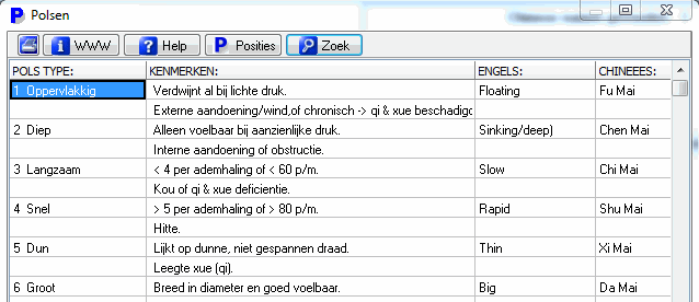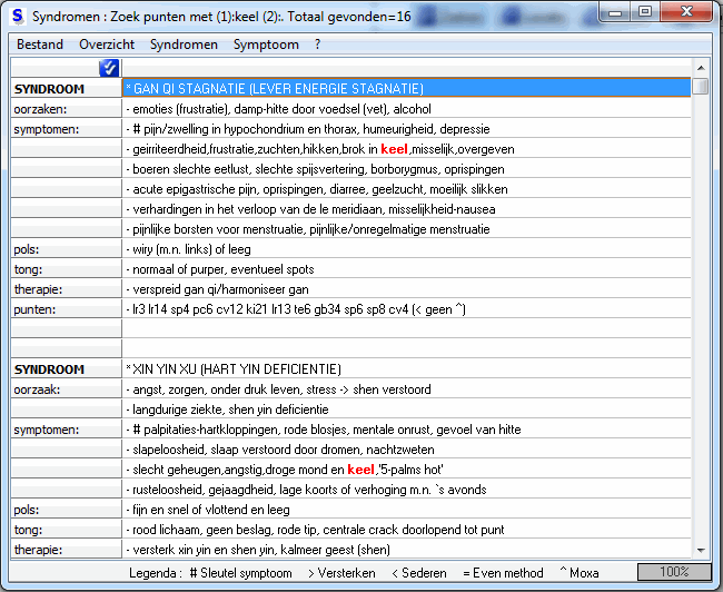 | Syndromen en Patronen | Alle klassieke TCM Syndromen en Patronen zijn te vinden, inclusief symptomen en therapieen. |